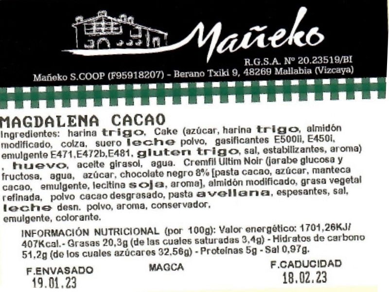 | Cantidad (magdalenas) | 1 Kg. (10-12 unidades aprox.), 1/2 Kg. (6-8 unidades aprox.), 2 Kg. (20-24 unidades aprox.) |
